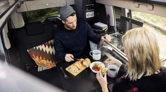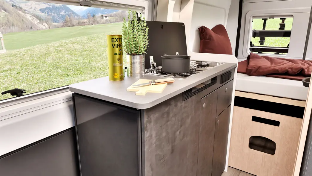 Although in most panel vans space is quite limited there is usually a kitchenette with a small fridge and a gas cooker. This is everything you will need to prepare quick meals and snacks. There are also clever storage spaces for food, crockery and cutlery. Depending on the model you can also use the gas cooker on a special device on the outside of the vehicle. Modern panel vans also have a small sink and a seating area with a table where you can enjoy your meal.